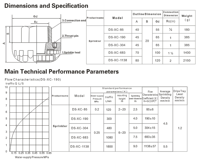 Incorporating abroad advanced technologies, the DS―XC Open Sprinkler is specially designed for sprinkler and fire extinguishing